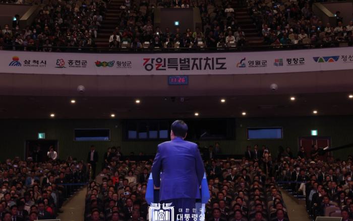 윤석열 대통령은 9일 오전 강원대학교 백령아트센터에서 개최된 ‘강원특별자치도 출범 기념식’에 참석해 “강원특별자치도의 ‘미래산업 글로벌도시’ 비전이 실현되도록 첨단산업 육성을 적극 지원하겠다”고 밝혔다. 이날 기념식은 지난해 6월 제정된 ‘강원특별자치도 설치 등에 관한