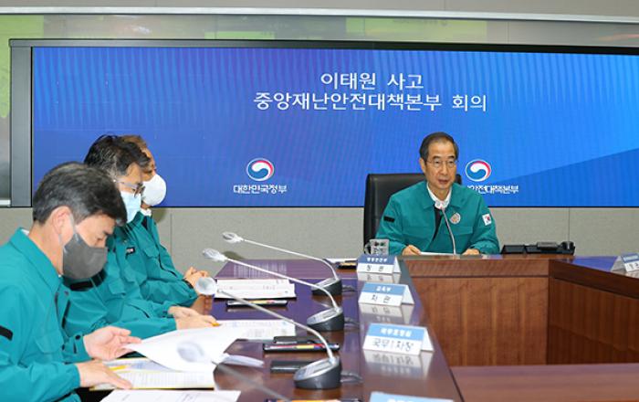 한덕수 국무총리는 10일 이태원 사고와 관련 “범정부 재난안전 관리체계, 경찰 대혁신, 다중 밀집 인파사고 예방 안전관리 대책 등 관련 대책을 다음 달까지 마련해 국민 여러분께 소상히 설명드리도록 하겠다”고 밝혔다. 한 총리는 이날 서울 세종