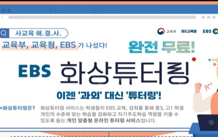 학생이 사교육 없이 교사나 대학생 멘토에게 질문하고 함께 토론하며 자기주도학습 역량을 키우는 무료 화상 튜터링 서비스가 시작된다. 교육부는 사교육비 경감 및 교육격차 해소를 위해 현직 교사와 대학생이 참여하는 ‘한국교육방송공사(EBS) 화상 튜터링’ 서비스를 다음