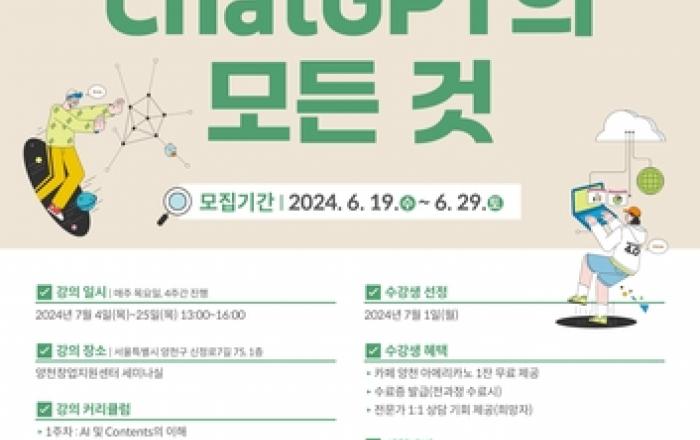 양천구는 인공지능 기술을 기반으로 취·창업자의 시장경쟁력 강화와 업무 혁신을 지원하기 위해 양천창업지원센터(이하 '센터')에서 내달 4일부터 한 달간 매주 목요일 오후 1시에 '챗GPT 특강'을 운영한다고 밝혔다. 생성형 인공지능(AI) 기술은 큰 품을 들이지 않고