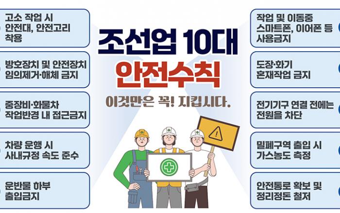 고용노동부와 안전보건공단이 합동으로 수리조선사 등 조선업 취약사업장 전담 패트롤팀을 운영해 고위험 작업을 집중 점검한다. 고용부는 최근 조선업 현장에서 중대재해가 잇달아 발생한 상황을 엄중히 여기고, 조선업 중대재해 예방을 위해 이같이 집중 관리 대책을 마련해 시행하고