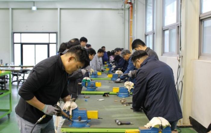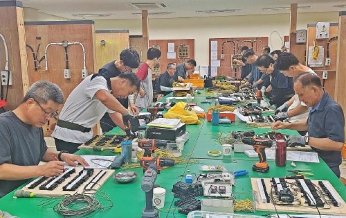 #. 한국폴리텍대학 항공캠퍼스는 지난해 7월, 은퇴 후 인생 다모작을 준비하는 중장년에게 ‘전기설비제어’ 단기 기술교육을 제공했다. 교육생 20명은 전기회로 구성과 배선, 배관(전선관 설치) 작업에 필요한 기술을 익혔다. 이들 중 16명이 전기기능사 국가기술자격 시험에