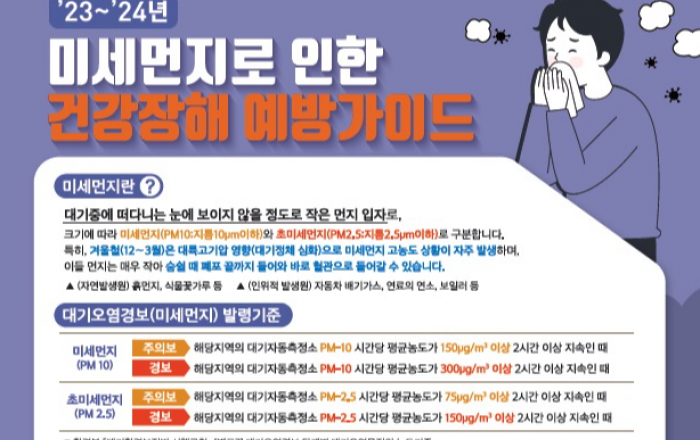 고용노동부는 겨울철 미세먼지에 노출되는 근로자의 건강보호를 위해 내년 3월까지 「미세먼지 대비 근로자 건강보호 대책」을 시행한다고 밝히며, 겨울철 미세먼지에 따른 건강관리 예방수칙을 철저히 준수해 달라고 당부했다. 매년 12~3월은 미세먼지 농도가 증가하며, 특히