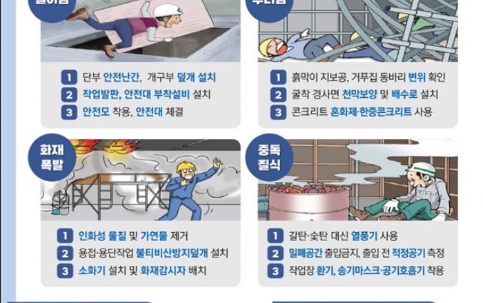 고용노동부와 한국산업안전보건공단은 제22차 현장점검의 날인 11월 22일에 2023년 3분기까지 사망사고가 집중된 50억원 이상 건설현장의 ‘추락’ 사고 예방조치를 집중점검한다. 건설현장 추락사고는 안전난간·개구부 덮개 설치, 안전대 착용 등과 같은 기본적인 수칙을