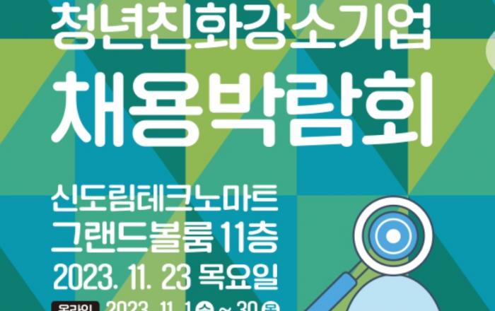 고용노동부와 (사)벤처기업협회는 11월 23일 신도림테크노마트에서 청년친화강소기업 43개소가 참여하는 ‘청년친화강소기업 (오프라인) 채용박람회’를 개최한다. 고용노동부는 명단공개 대상 임금체불, 산재사망사고 등 결격 사유에 해당하지 않고, 일생활균형,임금,고용안정,