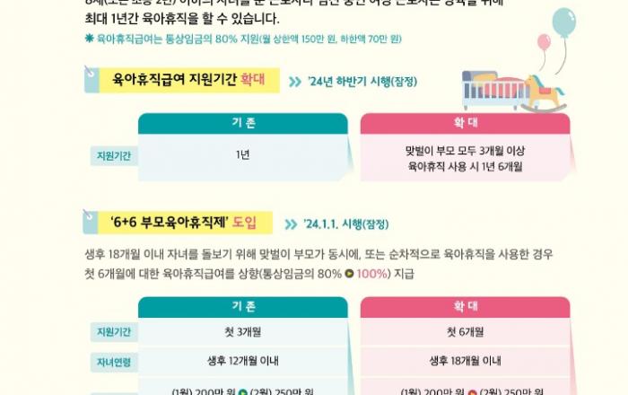 고용노동부는 일하는 부모의 일·생활 균형을 위해 육아휴직 등 모성보호제도를 지속해서 확대해 왔다. 출산휴가, 육아휴직 등 모성보호제도 활용은 지속적으로 증가하고 있으나, 여전히 대기업에 비해 중소기업에서는 활용이 어렵고, 남성보다는 여성 중심으로 활용되고 있다.