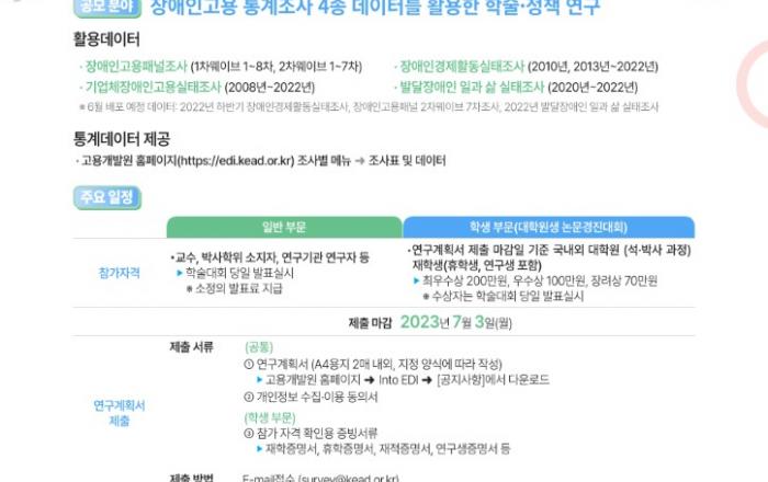 한국장애인고용공단 고용개발원(이하 ‘고용개발원’)은 ‘제15회 장애인고용패널 학술대회’를 ‘청년 장애인 고용서비스 고도화 방안 모색’을 주제로 11월 3일(금) 서울 대한상공회의소에서 성황리에 개최했다. 기획주제 발표에 나선 한국청소년정책연구원(NYPI)의 김기헌