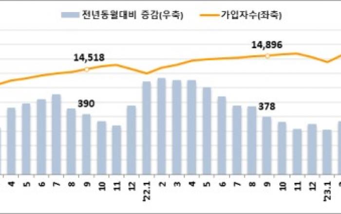 2023년 9월말 기준 고용보험 상시가입자는 1,525만 5천명으로 전년동월대비 35만 9천명(+2.4%) 증가하였다. 산업별로는 제조업(+119천명)과 서비스업(+230천명)에서 모두 증가했다. 제조업은 금속가공·식료품·자동차·기타운송장비 등을 중심으로 증가하나