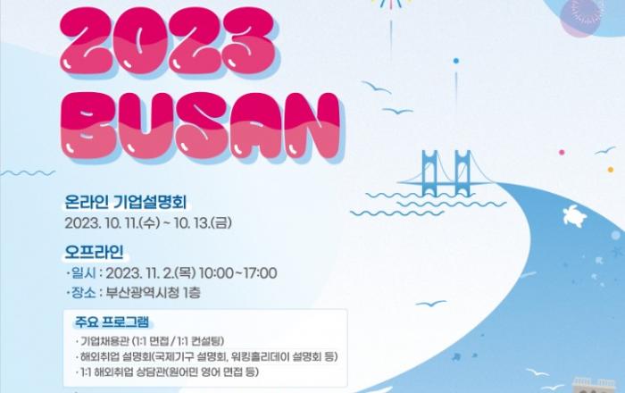한국산업인력공단(이하 ‘공단’)은 해외취업을 희망하는 청년들을 위해 ‘온라인 기업 설명회’를 11일부터 13일까지 부산경제진흥원과 공동 개최한다. 설명회는 11월 2일 열릴 예정인 ‘해외취업 엑스포 2023 부산’의 사전 행사이며, 온라인 화상회의 형태로 운영된다.