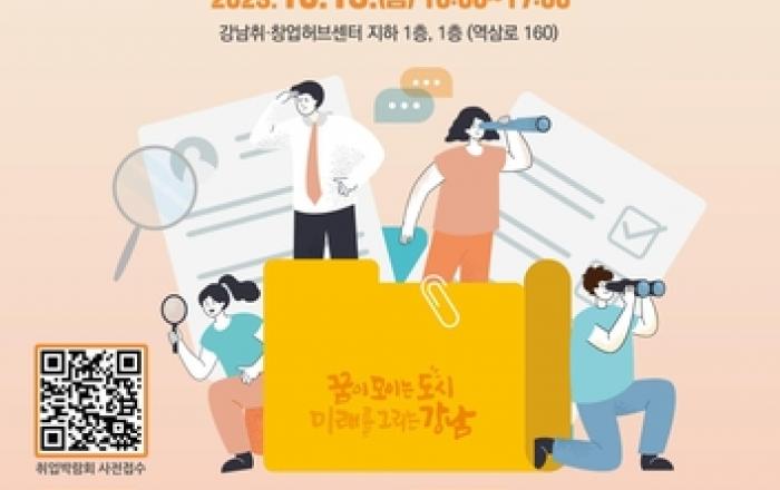꿈이 모이는 도시, 미래를 그리는 강남구가 오는 13일 10시∼17시 강남 취·창업허브센터(역삼로 160)에서 '2023 강남구 취업박람회'를 개최한다. 이번 취업 박람회에는 코스피 상장기업인 LG전자, 포스코인터내셔널, 케이티아이에스를 비롯해 오픈놀, 아고다,