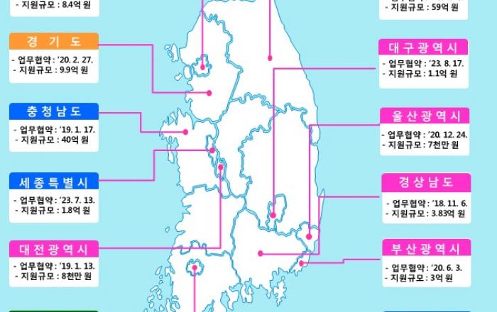 근로복지공단은 소상공인의 사회보험료 지원을 위해 대구시·소상공인시장진흥공단·대구신용보증재단 등 4개 기관과 함께 8월 17일 업무협약을 체결했다고 밝혔다. 공단은 2018년 강원도를 시작으로 지난 5년간 12개 광역단체 및 8개 기초단체와 업무협약을 체결하여 연간