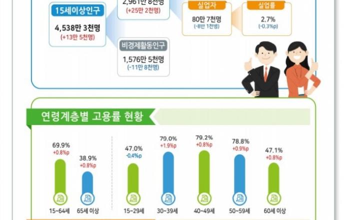 지난달 취업자 수가 같은 기간보다 33만3000명 증가하면서 석달째 30만명대 증가세를 유지하고 있다. 고용률과 실업률은 각각 역대 최고와 최저 수준을 기록하며 호조세를 나타냈다. 12일 통계청이 발표한 ‘6월 고용동향’에 따르면 지난달 취업자 수는 2881
