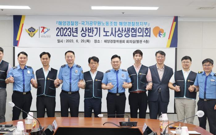 해양경찰청과 “국가공무원노동조합 해양경찰청지부는 노-사간 소통과 화합을 다지기 위한 ‘2023년 상반기 노사 상생협의회’를 개최했다.”고 29일 밝혔다. 오늘 오전 10시, 청사 회의실에서 열린 노사 상생협의회는 이명준 기획조정관과 도재만 노조 위원장 등 12명이