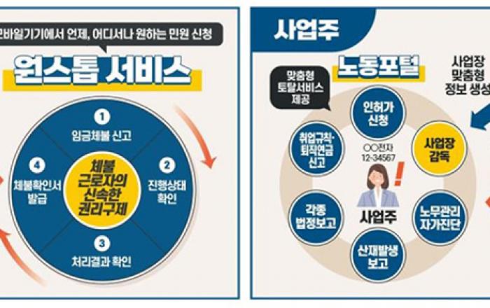 언제, 어디서나 노동 분야 민원을 편리하게 처리할 수 있는 온라인·모바일 기반의 ‘노동포털’이 지난 3일부터 서비스를 시작했다. 그 동안 두 달여간의 시범운영을 거친 노동포털은 청년 등 취약계층의 권리구제 강화를 위한 것으로, 노동관서에 직접 방문할 필요없이 온라인으로