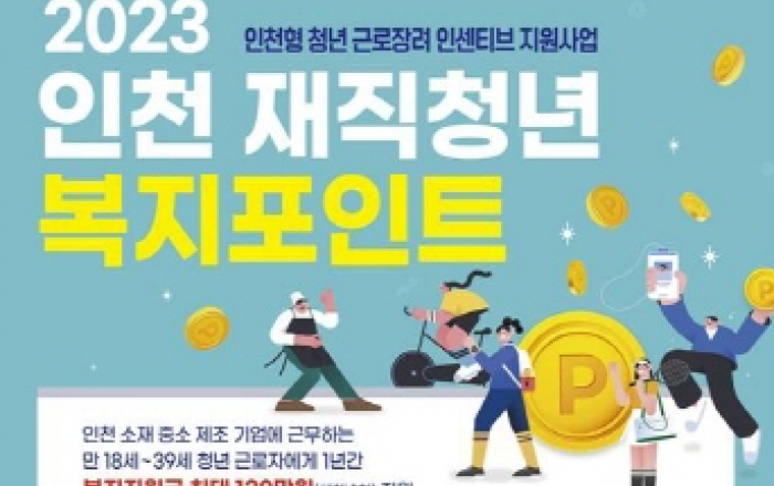 인천광역시는 인천 재직청년들의 삶의 질 향상 및 근속 유도를 위한 '인천 재직청년 복지포인트' 사업 참여자를 오는 5월 31일까지 선착순 모집한다고 밝혔다. 인천형 청년 근로장려 인센티브의 일환인 이번 사업은 조기 퇴사의 주원인인 복리후생 불만 요인 해소해 장기근속