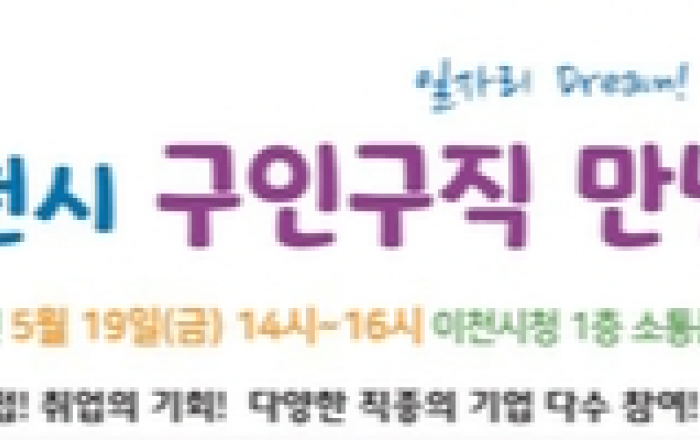 이천시는 오는 19일 올해 세 번째 '구인구직 만남의 날' 행사를 개최한다. 이천시청 1층 소통큰마당(대회의실)에서 진행되는 '구인구직 만남의 날' 행사는 반도체, 제조업, 서비스업 등 다양한 직종의 22개 중소기업이 참여해 115명을 채용할 예정이며 오후 2시∼4