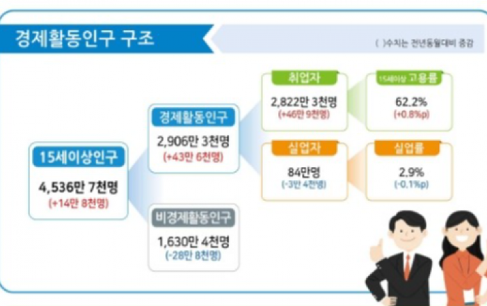 2023년 3월 말 기준 고용보험 상시가입자는 1,500만 7천명으로 전년동월대비 36만 9천명(+2.5%) 증가하였다. 산업별로는 제조업(+100천명), 보건복지(+94천명), 숙박음식(+48천명), 정보통신(+44천명), 전문과학기술서비스(+42천명) 등에서 증가