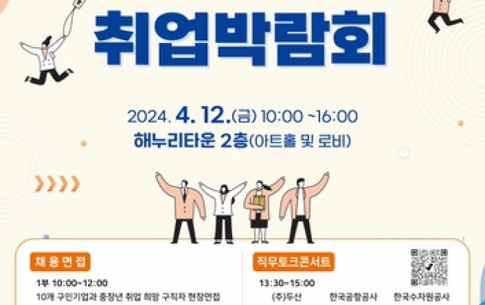 양천구는 오는 4월 12일 해누리타운 해누리홀 및 아트홀에서 20개 기업과 300여 명의 구직자가 참여하는 대규모 일자리 매칭의 장 '굿잡(GOOD JOB) 양천구 취업박람회'를 개최한다고 밝혔다. 이번 취업박람회는 일반 · 회계 사무, 비서직, 여행 사무직, 생산