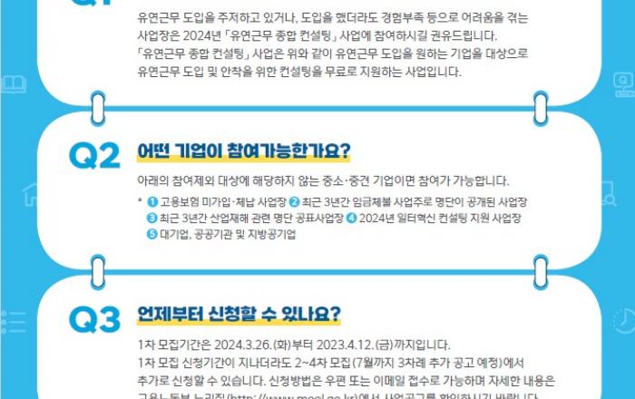 ㄱ업체는 성남시 소재한 47명 규모의 게임개발 기업으로, 지난해 고용노동부에서 시행하는 재택근무 컨설팅의 도움을 받았다. 게임 업계의 우수 인재를 영입하기 위해 재택근무를 도입했으나 체계적인 관리 규정 등이 없던 차에 무료 컨설팅을 지원받게 되면서, 복무 관련 규칙은