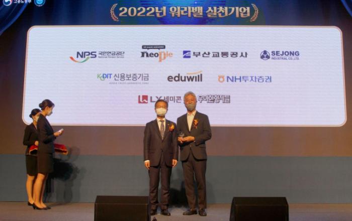 세종공업은 워라밸 문화 개선의 노력을 인정받아 11월 23일 고용노동부 주관 ‘2022 워라밸 실천 기업’에 선정됐다.고용노동부는 워라밸(일/생활 균형) 실천 기업을 선정해 2017년부터 매년 장관상을 시상하는 가운데 2022 워라밸 실천 기업으로는 세종공업을 비롯해