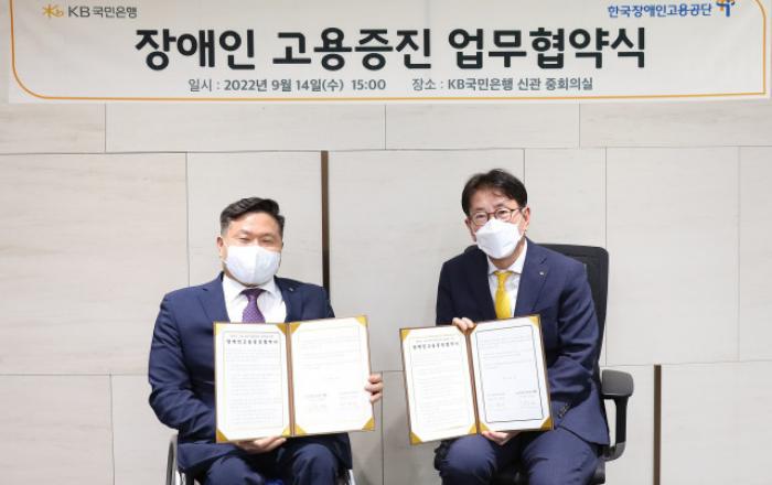 KB국민은행이 한국장애인고용공단(이사장 조향현)과 ‘장애인 고용 증진을 위한 업무협약’을 체결했다고 밝혔다.이번 협약은 지속 가능한 일자리를 발굴해 장애인에게 안정적인 일자리를 제공하고 경제적 자립을 도모하기 위해 체결됐다. 양 기관은 △장애인 고용 컨설팅센터와 협업을