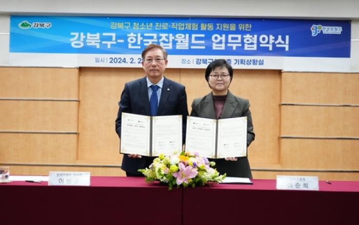 서울 강북구는 한국잡월드와 미래인재 육성을 위해 지난 29일 업무협약을 맺고 강북구 내 초등학생들을 대상으로 직업 체험 등 다양한 진로탐색의 기회를 제공한다. 경기도 성남시에 소재한 한국잡월드는 고용노동부 산하의 국내 최대 규모의 종합직업체험관이다. ▲어린이체험관