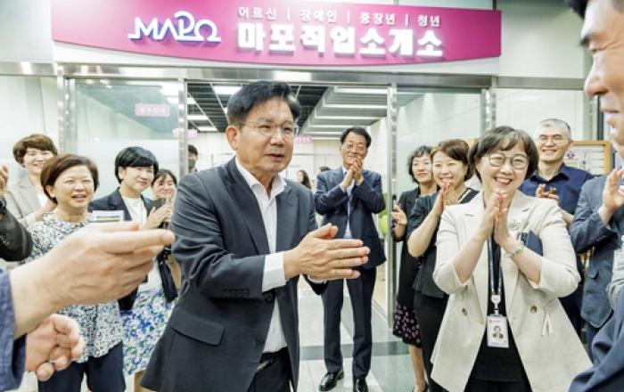 마포구청 1층 '마포직업소개소'가 구직자들의 호응을 얻고 있다. 지난해 마포구(구청장 박강수)는 거동이 불편한 어르신과 장애인 구직자를 위해 구청사 1층에 마포직업소개소를 개소하고 본격적인 일자리 발굴 지원에 나선 바 있다. 마포직업소개소는 창구마다 칸막이가 있