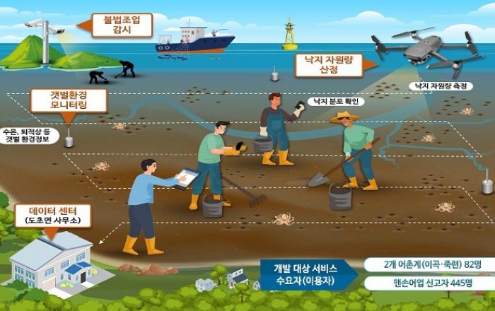 과학기술정보통신부(이하 ‘과기정통부’)와 전라남도 신안군, 한국지능정보사회진흥원(이하 ‘NIA’)은 올해 스마트빌리지 사업으로 추진된 신안군(도초면) ‘갯벌어장 스마트 낙지 조업지원 및 자원관리 서비스’의 성과보고회(12.13)를 개최하고, 현장 시연 등 구축내용을 최