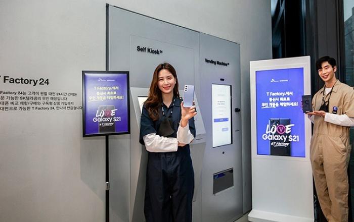 SK텔레콤은 22일 홍대 ICT멀티플렉스 T팩토리에서 국내 최초로 갤럭시S21 무인 개통 행사를 개최했다고 밝혔다.SKT는 고객 안전과 방역 지침을 고려, T팩토리의 무인 구매 공간 ‘T팩토리24’에서 행사를 진행했다. 이날 행사에는 갤럭시S21 예약 구매 고객 중 사