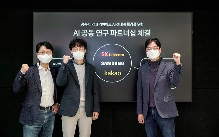 SK텔레콤, 삼성전자, 카카오는 팬데믹(Pandemic) 시대의 AI 기술 개발에 협력하기로 했다고 22일 밝혔다.3사는 이번 AI 동맹으로 각 사가 가진 핵심 역량을 모아 ▲미래 AI기술 개발 ▲사회적 난제 해결을 위한 AI 활용 방안 연구 ▲AI기술 저변 확대를 공