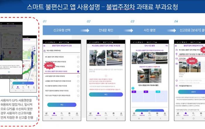 이제 불법주정차량을 앱으로 신고할 때 ‘서울스마트 불편신고 앱’을 실행하고 사진만 찍어 보내면 간단하게 처리된다.서울시는 ‘서울스마트 불편신고 앱’의 기존 6단계 신고절차를 대폭 간소화, 기능을 개선한 서비스를 오늘(11.17.) 10시부터 개시한다고 밝혔다.‘서울스마
