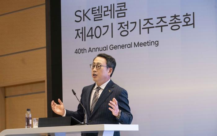SK텔레콤이 26일 서울 을지로 본사 T타워에서 제 40기 주주총회를 열고 ▲2023년 재무제표 승인 ▲정관 일부 변경의 건 ▲총 4명의 이사 선임 등의 안건을 승인했다. 2023년 연결 재무제표는 전년 대비 각각 1.8%, 8.8% 성장한 연간 매출 17조 6,08