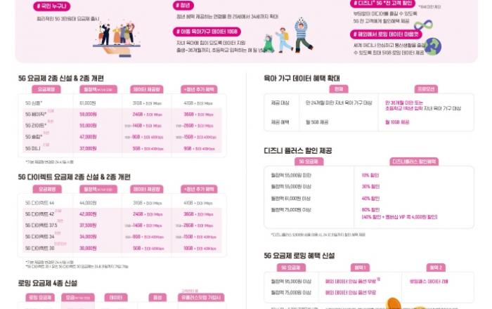 SK텔레콤이 실속 있는 통신 서비스이용자를 위해 5G 요금제를 개편한다고 27일 밝혔다. SKT는 기존 가장 저렴한 5G 요금제인 베이직(월 4만 9천 원)보다 1만 원 낮춘 3만 9천 원 수준의 5G 요금제와 업계 최초로 2만 원대 온라인 전용 5G 요금제를 선보인