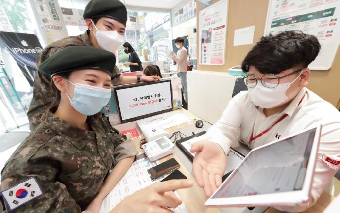 KT가 현역 병사들을 위해 다양한 미디어 혜택을 담은 ‘Y군인 Plus’ 2종을 출시한다고 19일 밝혔다. Y군인 Plus는 데이터 무제한 요금제와 함께 실시간 채널과 VOD를 볼 수 있는 시즌믹스와 지니뮤직 서비스를 더했다. Y군인 Plus 요금제는 ‘Y군인 55