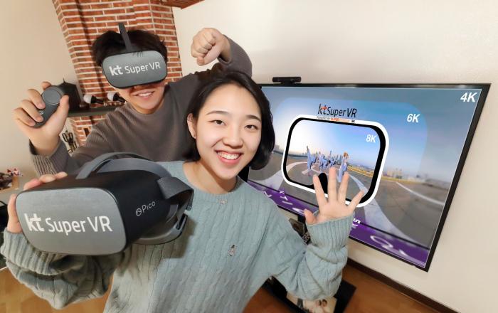 KT(www.kt.com)가 개인형 VR 서비스인 ‘슈퍼VR’을 통해 3월부터 8K VR 스트리밍 상용 서비스를 세계 최초로 제공한다고 13일 밝혔다. KT는 지난해 7월 4K 무선 독립형 VR 서비스인 ‘슈퍼VR’을 출시하고, 다양한 장르의 VR 콘텐츠를 선보여왔다