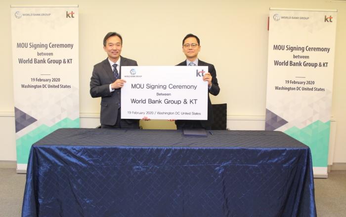 KT가 19일(현지 시간) 미국 워싱턴 D.C. 세계은행 본부에서 세계은행(WB: World Bank)과 AI·빅데이터 기반 국제개발협력 사업 추진을 위한 업무협약(MOU)을 체결했다고 20일 밝혔다. 이번 업무협약 체결로 KT와 세계은행은 개발도상국과 분쟁 취약국을
