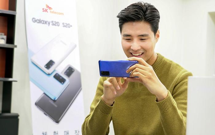 SK텔레콤(www.sktelecom.com)은 20일부터 갤럭시S20 예약 판매에 돌입하고 오는 27일부터 개통을 시작한다고 밝혔다. 갤럭시S20 플러스 아우라 블루 컬러는 전 세계에서 오직 SK텔레콤에서만 구매 가능하다. 블루 컬러는 기존에 갤럭시 단말을 구매한 고객