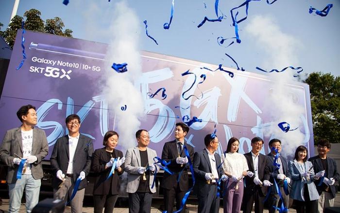 SK텔레콤 이 20일 오전 서울 올림픽공원에서 ‘SK텔레콤 5GX-갤럭시 노트10 개통행사’를 성대하게 개최했다. 이날 행사에는 김연아, 홍종현, 최희 등 유명인들을 비롯해 SK텔레콤 이용 고객들도 대거 참석해 SK텔레콤의 갤럭시 노트10 개통을 축하했다.노트10 개통