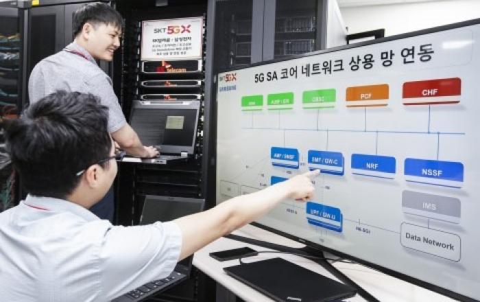 SK텔레콤은 삼성전자와 함께 국내 최초로 5G 단독규격인 ‘5G SA’ 패킷 교환기와 코어 장비를 연동해 순수 5G 시스템을 이용한 데이터 통신에 성공했다고 1일 밝혔다. 패킷 교환기는 스마트폰 등 모바일 기기에서 발생하는 모든 음성과 데이터 트래픽이 인터넷 망으로 접