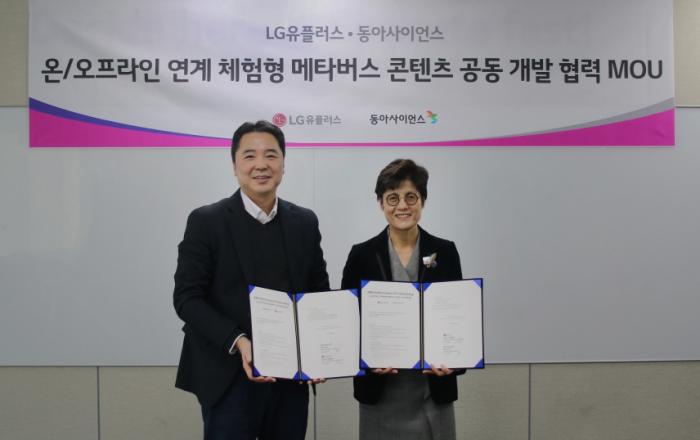 LG유플러스는 동아사이언스와 메타버스 체험형 콘텐츠 공동 개발 협력을 위한 업무 협약을 체결하고, 오프라인 체험 학습 프로그램인 ‘지구사랑탐사대’를 메타버스 전용 교육 콘텐츠로 제작한다고 30일 밝혔다. 이번 협약을 통해 LG유플러스는 키즈 전용 메타버스 서비스
