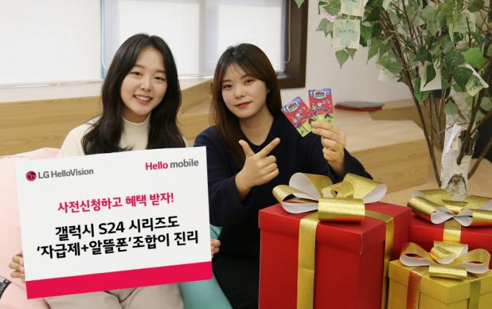 갤S24 출시가 임박한 가운데, 헬로모바일이 ‘자급제+알뜰폰’ 꿀조합 예비유저들을 위한 새해 선물을 준비했다. LG헬로비전 헬로모바일( direct.lghellovision.net )이 갤럭시S24 출시를 앞두고 직영몰을 통해 ‘자급제