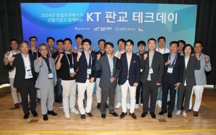 KT가 경기도 판교 오픈이노베이션 센터에서 창업도약패키지 프로그램에 선발된 15개 사 스타트업과 KT사업부서 임직원이 만나는 오픈이노베이션 밋업 행사 ‘판교 테크데이’를 개최했다고 밝혔다.창업도약패키지 프로그램은 3-7년차 도약기에 있는 유망 스타트업을 발굴해 KT와