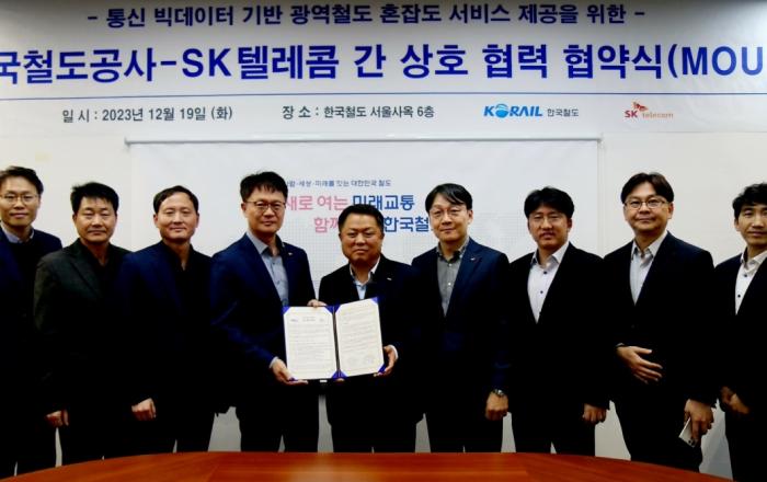 SK텔레콤은 한국철도공사와 ‘통신 빅데이터 기반 광역철도 혼잡도 서비스 제공’을 위한 업무협약을 맺고 서비스 개발에 나선다고 20일 밝혔다. 이번 업무협약은 SKT와 한국철도공사(이하 코레일)가 가진 데이터와 기술력을 결합해 광역철도 혼잡도 데이터를 추출, 공개함으로
