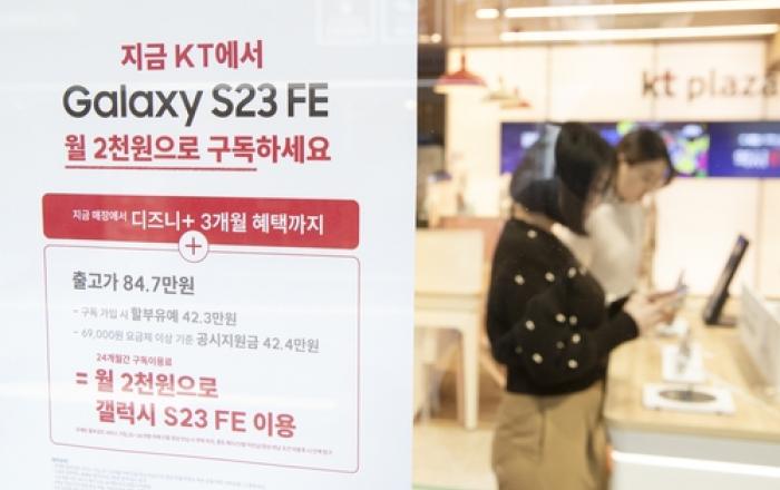 KT는 지난 8일 출시한 '갤럭시S23 FE' 가입자의 절반이상이 '갤럭시S23 FE 구독서비스'를 가입했다고 13일 밝혔다. KT는 새로운 서비스와 고객선택의 폭을 넓히고 최근 정부에서 발표한 '통신비 부담 완화 방안'의 일환으로 출시한 갤럭시S23 FE의 4일간