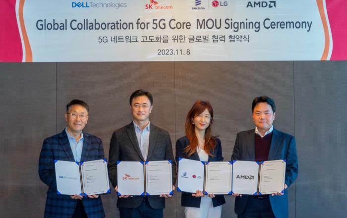 SK텔레콤은 에릭슨엘지, 델 테크놀로지스, AMD와 함께 ‘5G 코어* 시스템 고도화’를 위한 글로벌 협력 체계를 구축했다고 9일 밝혔다. * 5G 코어(Core) : 네트워크를 구성하는 3대 요소 ‘기지국’, ‘전송망’, ‘교환기’ 중 ‘교환기’를 의