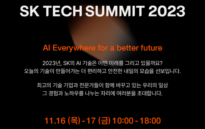SK텔레콤은 오는 11월 16일부터 17일까지 서울시 강남구 코엑스에서 열리는 SK그룹의 종합 기술전 ‘SK 테크 서밋 2023’ 참가 등록을 시작한다고 18일 밝혔다. ‘SK 테크 서밋’은 SK의 기술 역량을 결집해 기술 생태계 조성을 도모하는 취지의 기술 컨퍼런스