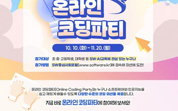 올해도 누구나 쉽고 재미있게 소프트웨어와 인공지능 교육을 체험할 수 있는 ‘온라인 코딩파티 시즌2’가 열린다. 과학기술정보통신부와 교육부, 한국과학창의재단은 10일부터 오는 11월 20일까지 총 6주간 무료로 참여할 수 있는 온라인 코딩파티 시즌2를 개최한다고 밝혔다.