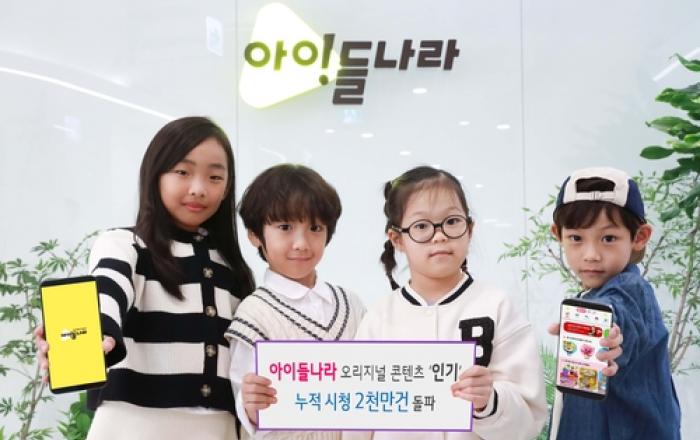 LG유플러스는 키즈 전용 서비스 '아이들나라(www.i-nara.co.kr)'의 오리지널 콘텐츠가 올해 9개월간 월평균 시청건수 2백만건, 누적 시청건수 2천만건을 넘어서며 큰 인기를 끌고 있다고 12일 밝혔다. 아이들나라는 LG유플러스 IPTV 'U+tv'와 모바