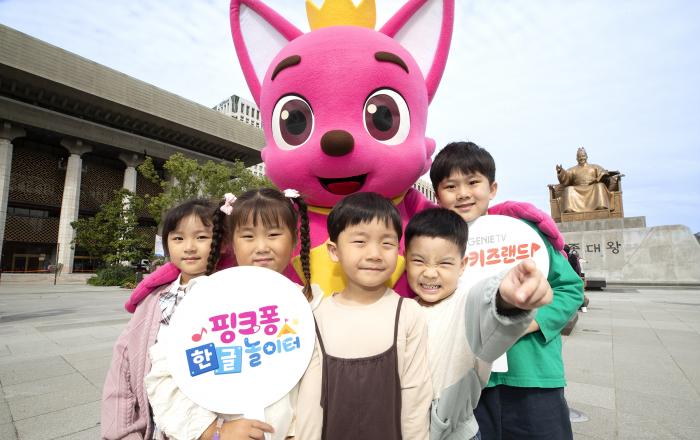 KT는 영유아 전용 IPTV 서비스 지니 TV 키즈랜드에서 한글 깨치기 프로젝트로 ‘핑크퐁 한글 놀이터’를 6일 공개한다고 밝혔다. ‘핑크퐁 한글 놀이터’는 KT와 글로벌 패밀리 엔터테인먼트 기업 더핑크퐁컴퍼니와 협력해 선보이는 지니 TV 키즈랜드의