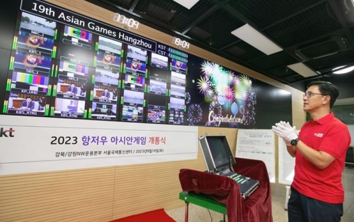 KT가 23일(현지 시간)부터 중국 항저우에서 개최되는 아시안게임을 위한 국제방송중계망을 구축했다고 19일 밝혔다. 중계망 구축을 기념해 KT는 혜화에 위치한 KT 서울국제통신센터에서 개통식을열었다. 행사는 지난 8월 항저우 IBC(국제방송센터, I